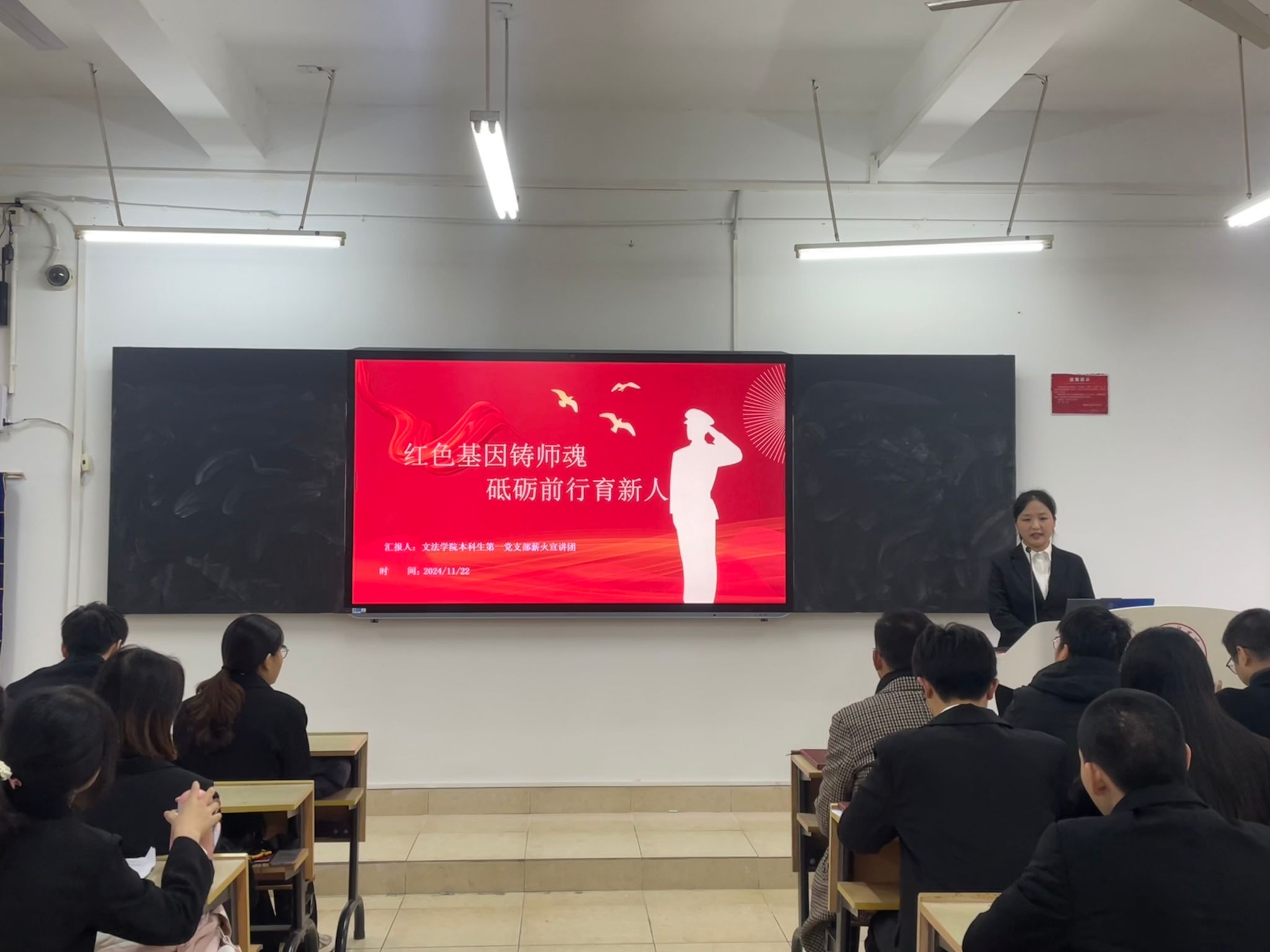 本网讯:11月22日,十大体育网站本科生第一党支部“薪火”宣讲团以“红色基因铸师魂,砥砺前行育新人”为主题开展宣讲活动。十大体育网站本科生第一党支部全体师生党员全员参与,共同感悟红色基因在教育领域的培育与传承。