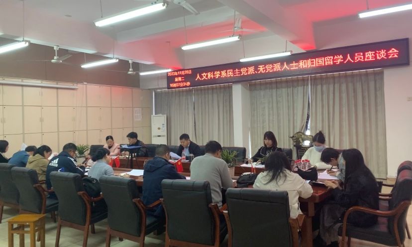 11月28日下午,人文科学系召开民主党派、无党派人士和归国留学人员座谈会,人文科学系各民主党派、无党派人士和归国留学人员代表参加会议。党总支书记李国鹏出席并主持会议。