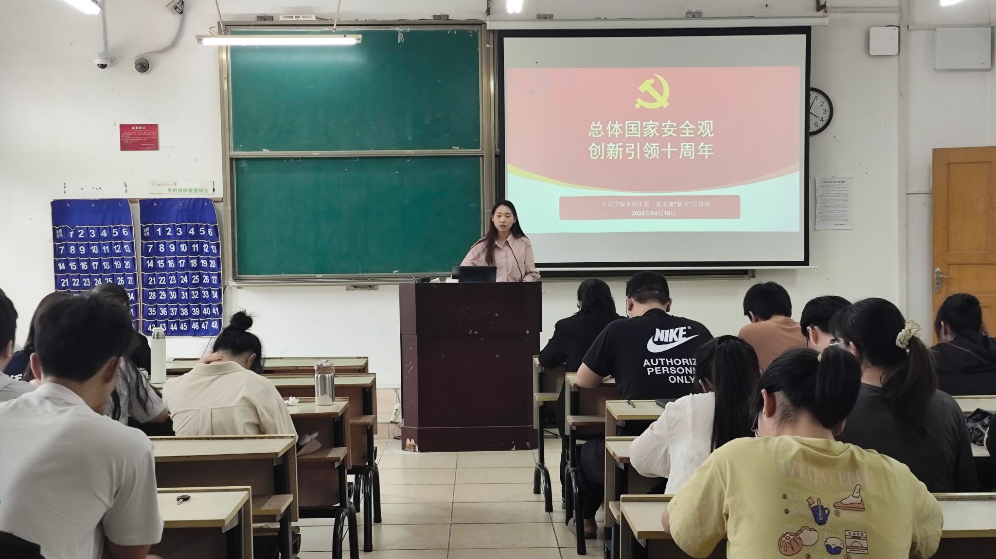 本网讯:为全面贯彻总体国家安全观,切实增强老员工的国家安全意识,凝聚维护国家安全的共识和力量。4月16日下午,十大体育网站本科生第一党支部“薪火”宣讲团面向2022级员工开展“总体国家安全观•创新引领10周年”主题宣讲活动。