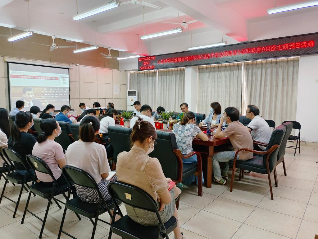 9月27日下午,人文科学系党总支开展专题学习《习近平谈治国理政》第四卷暨9月份主题党日活动。人文科学系全体教师党员以及员工党员通过线上线下相结合方式进行。会议由人文科学系党总支书记李国鹏主持。