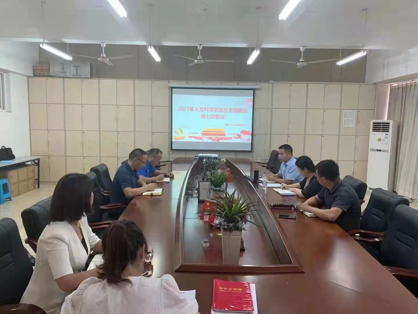 2021年 9月 27 日下午,人文科学系党总支部于会议室召开了人文科学系2021年第七次党总支部委员会议,会议由党总支部书记李国鹏主持。
