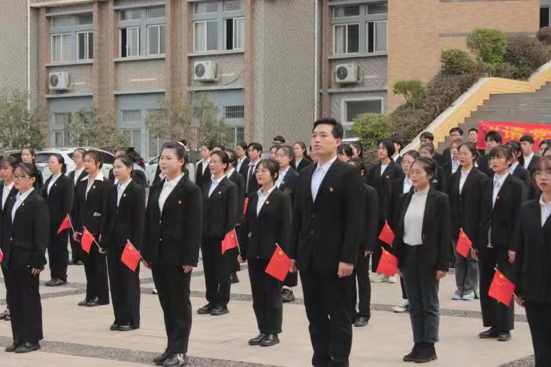 全体成员面向国旗以青春的名义许下誓言,齐声喊出“立鸿鹄志 做奋斗者”,观摩人员都为之震撼。随后,共同前往主教大厅一同欣赏我系员工以画为体、以党为魂的“请党放心、强国有我”特色主题画展,充分彰显了当代青年一片赤诚向党心、一份忠贞向党魂。