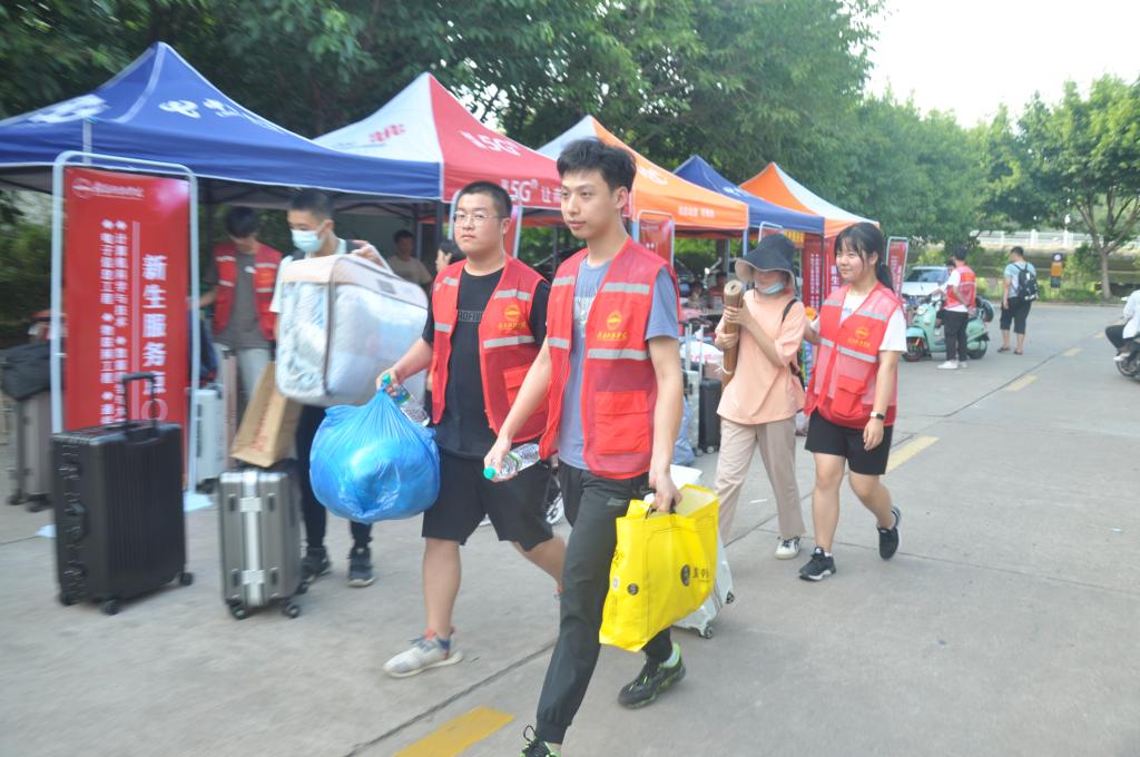 “学姐,请问我应该到哪里去报到?”“学长,请问报到有哪些流程?”“请问充水卡的地方在哪里?”……志愿者们面对学弟学妹们的众多问题,都乐此不疲的为他们做指引。新生抵达报到处后,志愿者们主动帮助新生将物品编号寄存到服务站,办理好入学手续后,由志愿服务者协助搬运行李到所在寝室。一位新生感慨:“一开始我还很担心自己太多行李,无法搬到寝室,但学长学姐热情的服务让我知道自己的担心是多余的,很开心自己的老员工活有了一个美好的开始!”“看到学长、学姐们汗流浃背,让我感到特别温馨、特别感动……”