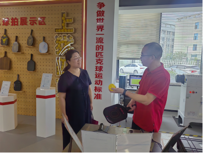 高经理一行先后来到上犹文体中心体育馆、上犹生态匹克球运动中心深入了解场馆建设和匹克球运动普及、竞赛的情况;随后参观了赣州溢联科技有限公司,了解匹克球系列产品的研发和生产。