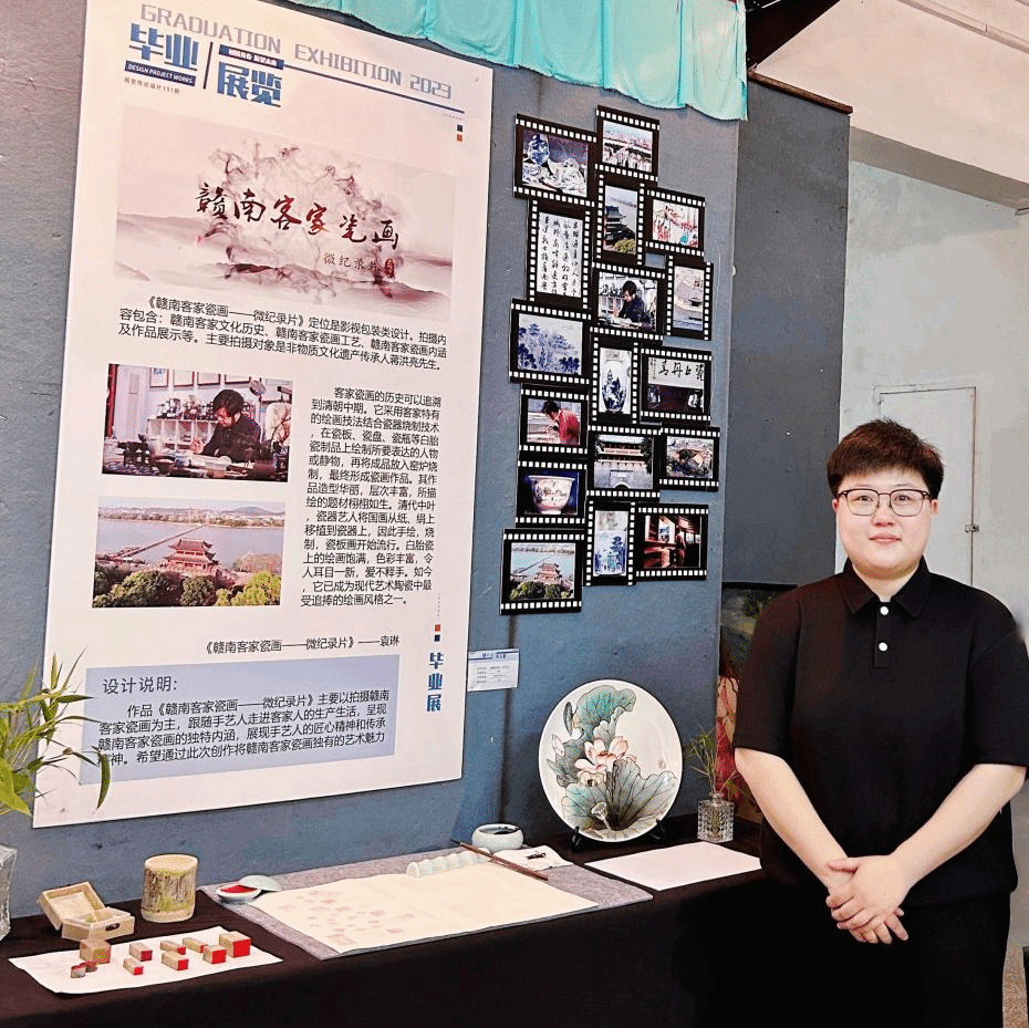 作为一线教育的高校教师和艺术设计工作者,燕凌深感责任重大。燕老师说:“赣南客家文化遗产承载着中华民族的基因和血脉,走在赣南的田野间,我真切感受到了中华文化的灿烂,希望通过我的数字记录和拍摄,为客家文化的传承和保护出一份微薄之力。”在日常教学中燕老师非常重视把中华优秀传统文化融入教学中,不断探索五育融合的艺术设计类课程的思政教学方法。她深知美育在员工成长中的重要性,多年来她积极探索将赣南客家非遗文化与美育相结合的新路径。由于有着视频拍摄制作的专业特长,燕老师多年来一直努力拍摄记录和传承保护传统非遗文化,并用虚拟数字孪生技术转译成数字设计作品。多年来,燕老师深入田野调查,带领员工团队持续采访拍摄了多位非遗传承人,积累了多个赣南非遗传承人的采访口述史记录和数字影像拍摄素材库,并制作了多部非遗主题的微纪录片。她主持参与的多项课题都围绕客家非遗文化传承和艺术文化服务乡村振兴,她通过行动让员工感受中国传统文化的魅力,通过带领员工参与课题、完成毕业设计等方式进一步理解中国传统文化,引导员工自觉培育和践行社会主义核心价值观,在美育和劳动实践过程中树立“家国情怀”。