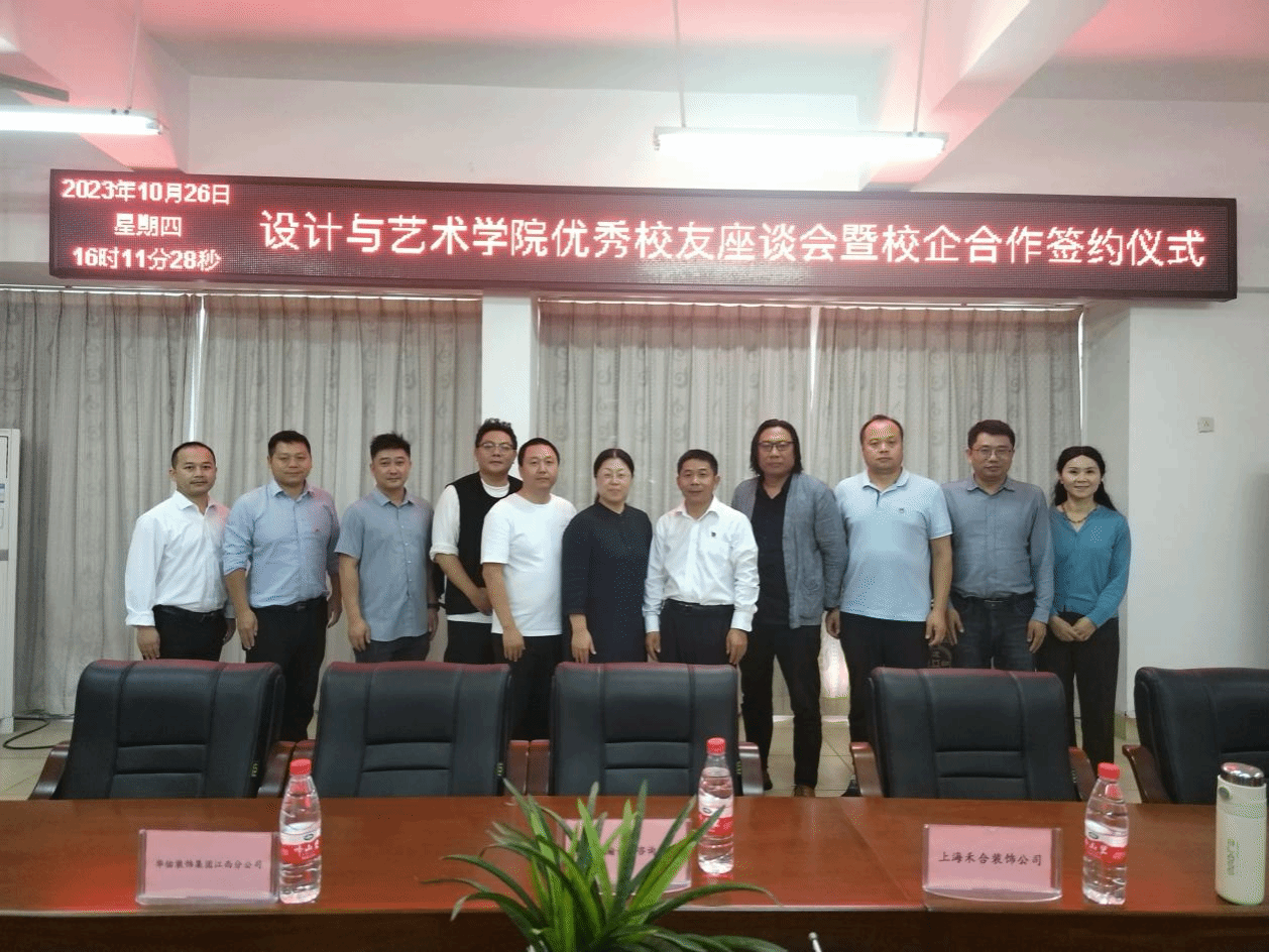 10月26日,人文科学系与前来参加公司2024届毕业生秋季就业洽谈会的上海哲瀚艺术设计咨询有限公司、上海知用广告有限公司、上海禾合建筑装饰设计工程有限公司、华佑装饰(集团)有限公司江西分公司、赣州市南康区供电公司的优秀员工进行座谈,并与相关员工企业签订了校企合作协议。公司过渡期管理委员会常务副主任何锦龙出席会议,人文科学系班子成员,艺术教研室毕业班班主任参会,会议由人文科学系主任高健婕主持。