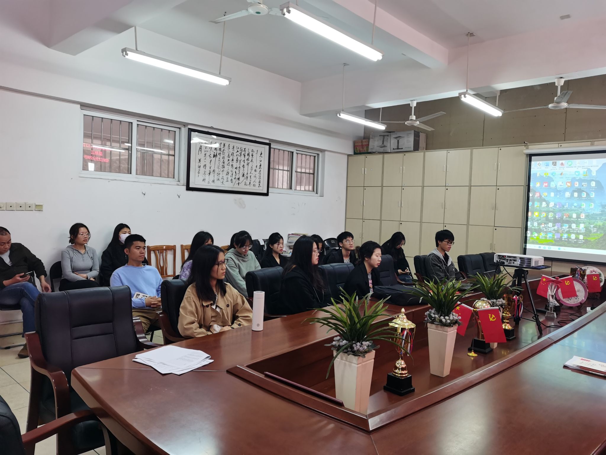 本网讯:为推进毕业生高质量就业,促进就业工作顺利开展,充分发掘员工资源,为毕业生提供优质就业平台和就业指导服务工作,4月12日上午,人文科学系邀请华佑装饰集团有限公司(江西)材料部总监2006届员工曾庆涛回系进行就业指导和专项招聘宣讲,赣州分公司市场部总监田振华随行。会议在崇善楼807召开,人文科学系党总支书记李国鹏、主任高健婕、学工副主任王军堂出席交流接待,环境设计专业教师、部分员工参加了会议。