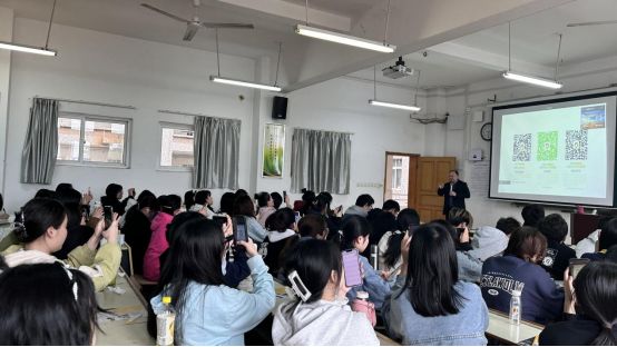 讲座最后,罗教授为大家介绍了澳门中葡贸易信息网在促进中葡贸易过程中所起的“三个中心”作用,展示了信息网的各个板块,如葡语国家产品资料库、会展信息等,并邀请同学们入驻中葡双语人才资料库,方便今后求职就业。