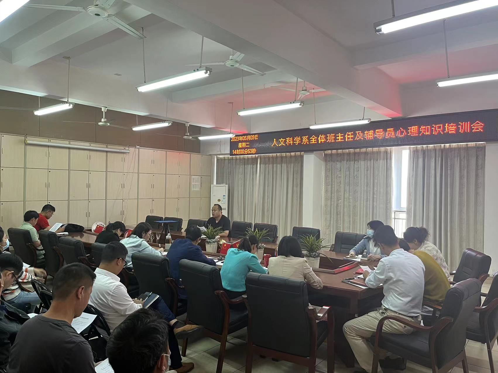 本网讯:进一步提高公司员工心理健康教育管理的针对性和有效性,全面提升教师心理健康教育水平,着力提升员工心理健康素养。5月9日下午,我系召开全体班主任及辅导员月度学工例会及心理健康知识培训会。会议由人文科学系主任助理王军堂主持,全体班主任及辅导员参加。