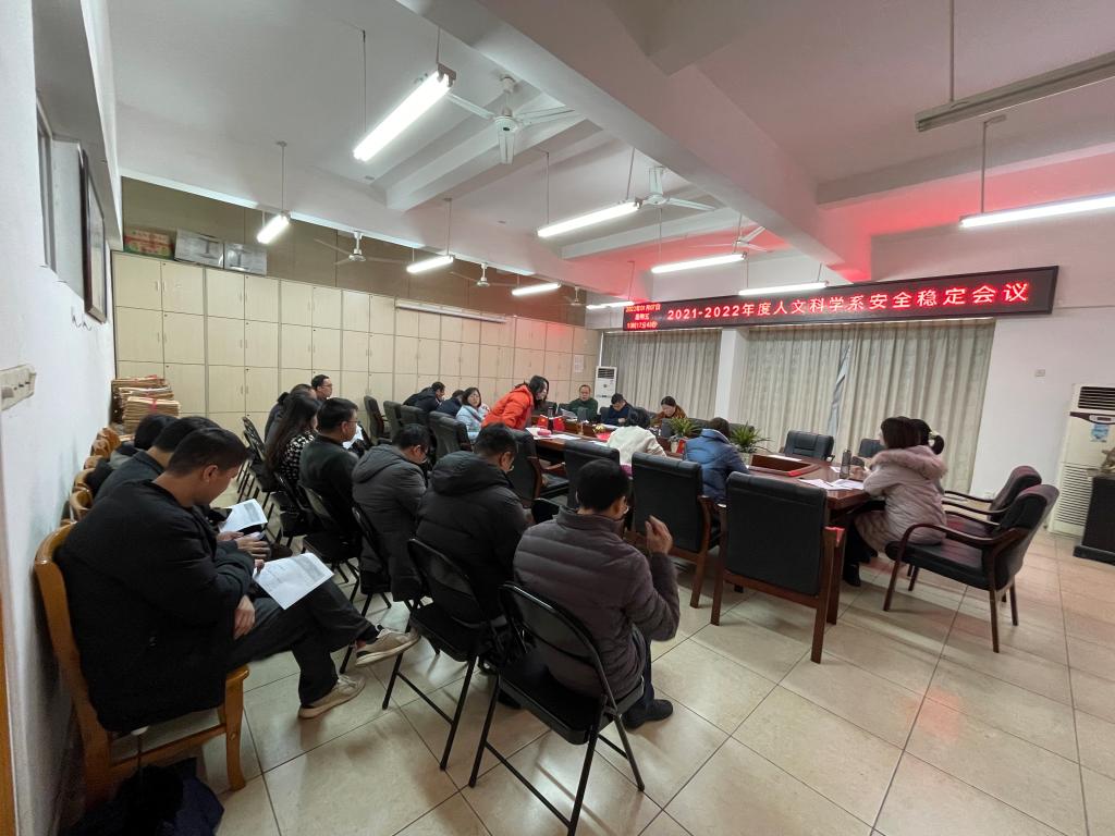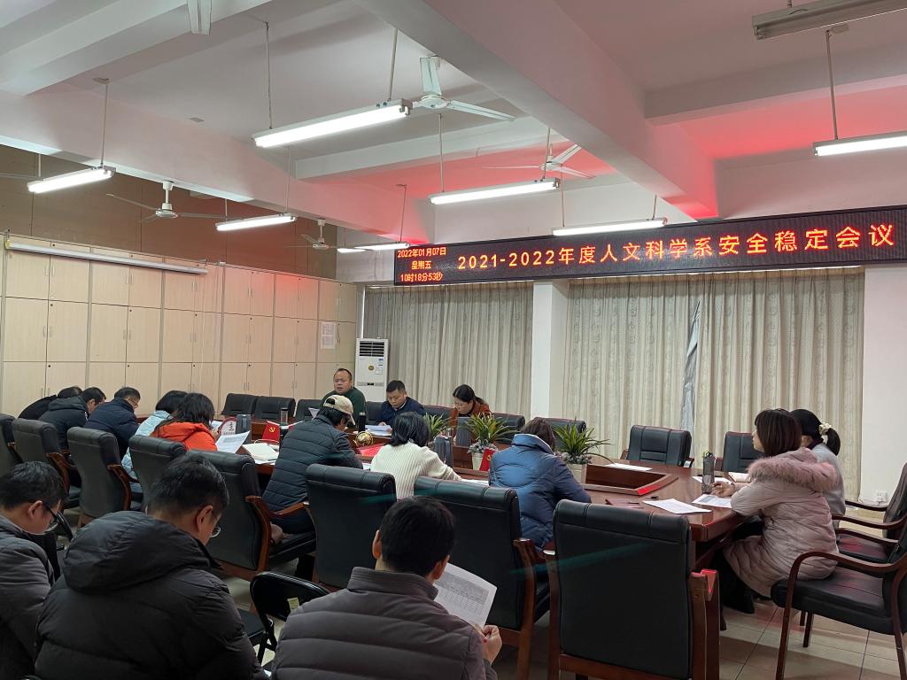 1月7日,为进一步做好员工安全教育工作,人文科学系召开寒假前安全稳定工作会议,防范安全隐患的发生,部署员工寒假离校等工作。人文科学系主任高健婕、党总支书记李国鹏、学工负责人王军堂,全体辅导员和班主任出席本次会议,会议由王军堂主持。