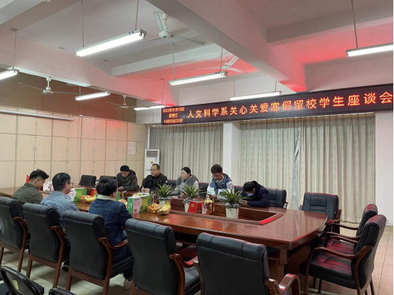 1月19日下午,人文科学系召开“寒假送温暖,情暖员工心”座谈会,进一步安排落实好寒假留校员工的安全、学习和生活,通过师生联动,送上人文关怀与温暖,共保安全,共谈心声,共品年味。人文科学系主任高健婕、学工负责人王军堂、18级辅导员和班主任,以及3名18级留校员工参加了本次会议。会议由王军堂主持。
