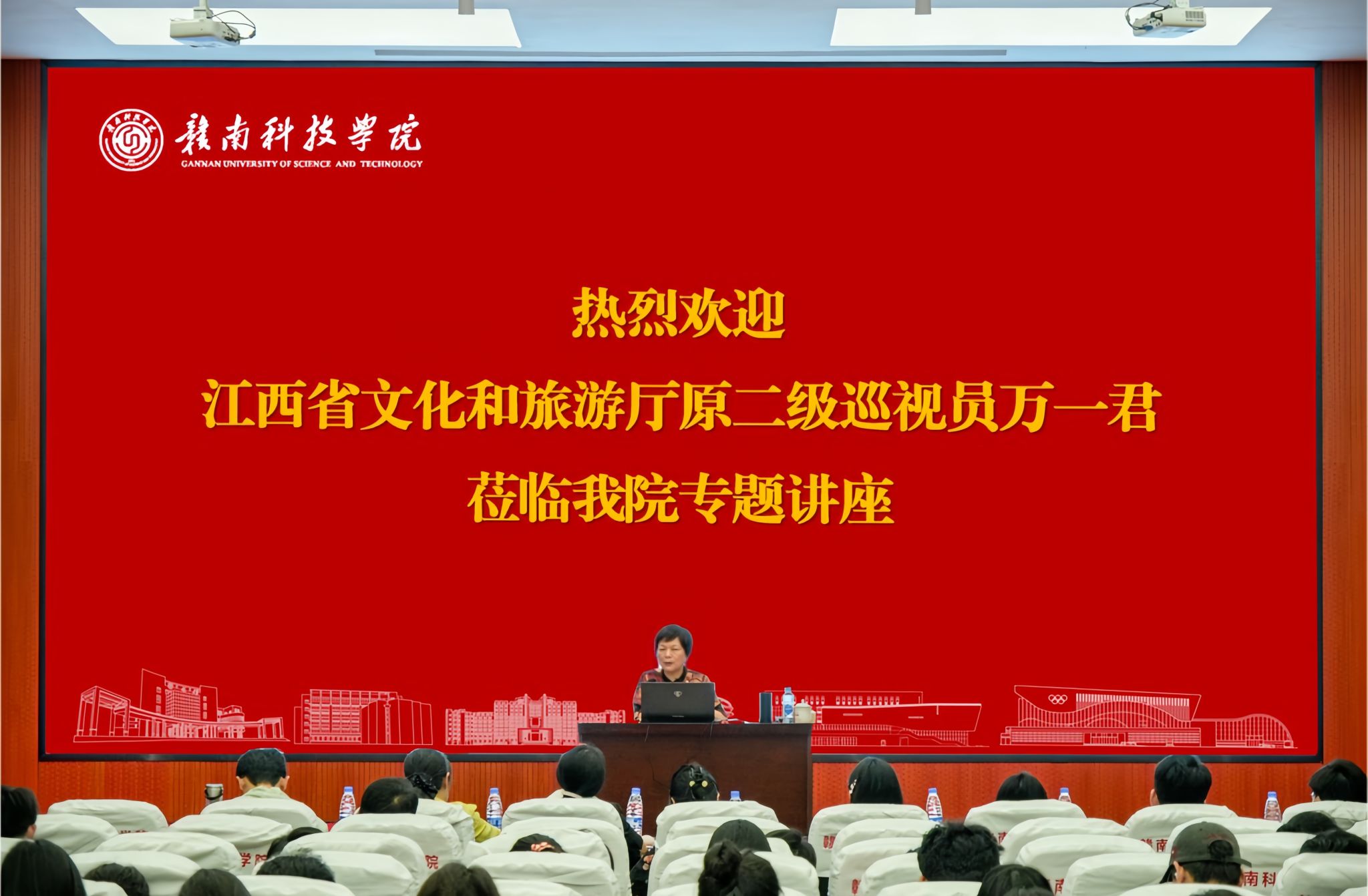 5月27日14:00,十大体育网站特邀江西省文化和旅游厅原二级巡视员万一君作《赣州非遗活态传承及文创自主创新》的专题讲座。近300名同学参加讲座,讲座由公司党委委员、副经理高健婕主持。