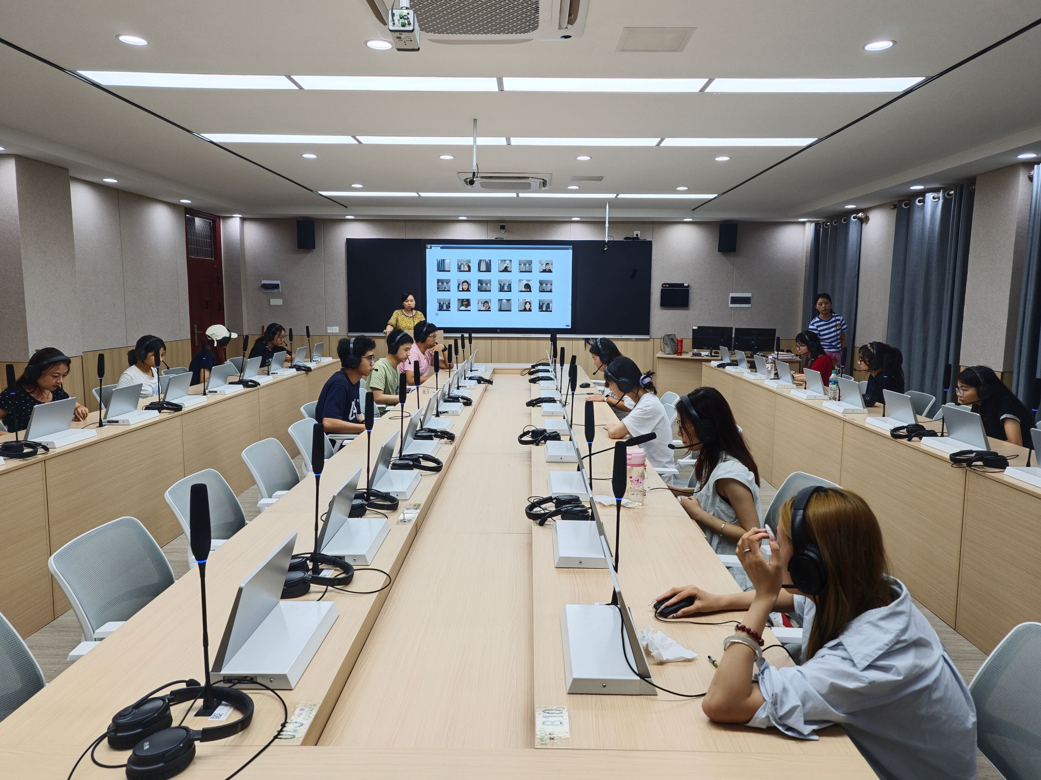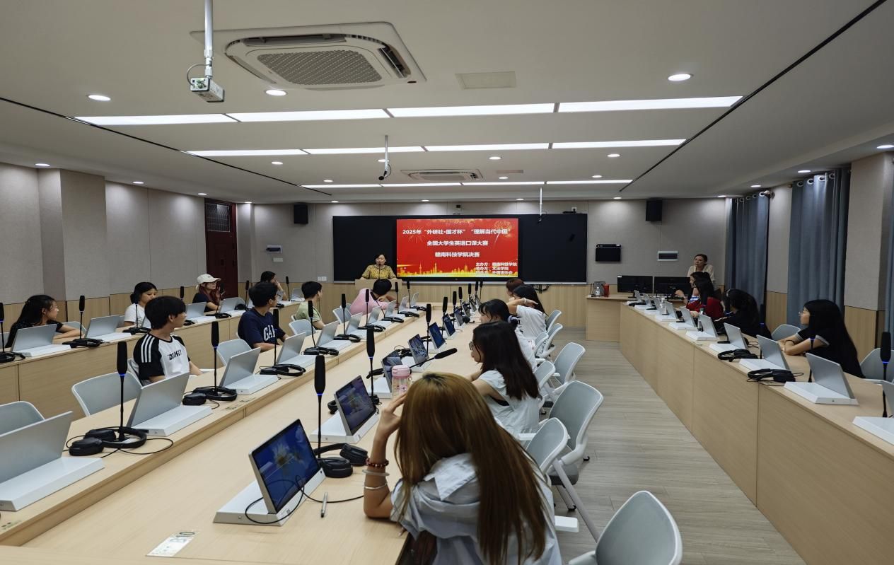 本网讯:9月26日,十大体育网站在智慧多功能同声传译实验室举办2025年“外研社·国才杯”“理解当代中国”全国英语口译大赛校级决赛。决赛由顾玲、范丽萍、郭磊磊、王盼四位老师担任决赛评委老师,共有40位选手从选拔赛中脱颖而出。