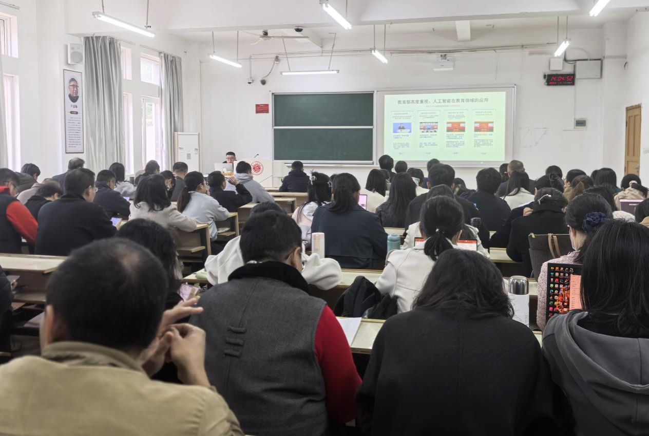 讲座由教学主任何建军主持。他首先强调了在教育数字化战略背景下,教师掌握AI教学工具的重要性与紧迫性,并希望全体教师能够通过学习,将AI技术转化为提升教学设计、课堂互动与教学评价质量的有效助力。