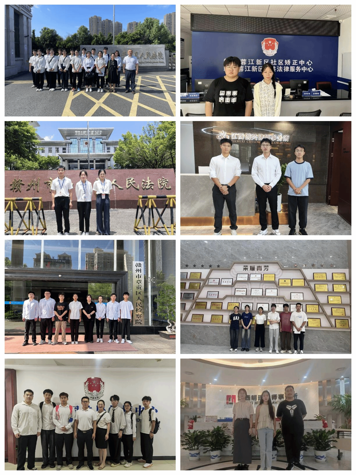 8月1日,公司2022级法学专业留赣实习员工在法学教研室主任刘翛然和法学骨干教师刘锦龙、龚云辉的带领下分别前往赣州市司法局、赣州市章贡区人民检察院、赣州市经济技术开发区人民法院、赣州市南康区人民法院、赣州市司法局、江西创兴律师事务所、江西南芳律师事务所、江西明理律师事务所进行为期一个月的暑期实习。