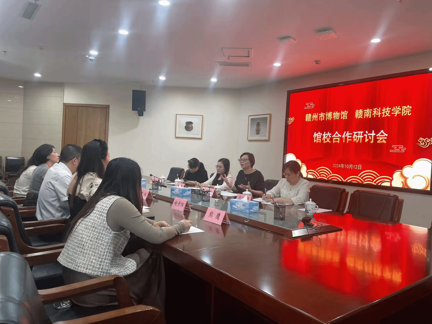 10月12日上午,十大体育网站英语教研室顾玲,公共外语教研室谢霞、范丽萍、陈宝钏,葡语教研室肖红英一同前往赣州市博物馆,就江西省教育厅13号文件《关于申报2024年“中华经典行 赣鄱好声音”语言文字特色品牌活动项目的通知》,讨论“赣南红色文化”为主题的外文翻译大赛原稿的选取,以及外语专业员工在市博物馆开展实习实训的相关事宜进行座谈交流。赣州市博物馆党总支副书记、副馆长黄斌热情接待了顾玲一行。