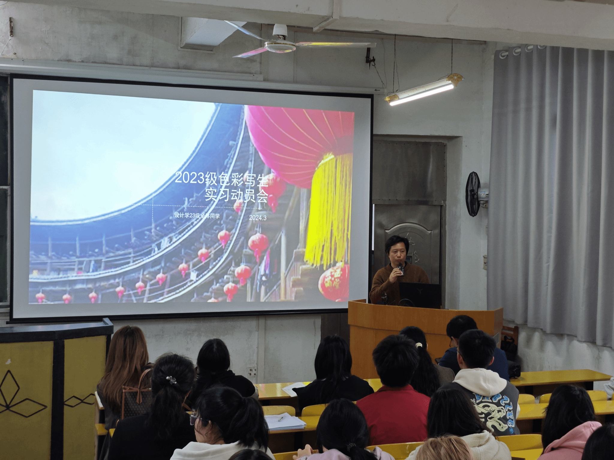 3月18日下午16:00 ,十大体育网站2023级设计学专业色彩写生实习动员会在红旗校区二教401教室如期举行。人文科学系副主任何建军、艺术教研室主任周娟、副主任赖文清、辅导员王奕婷、全体实习带队老师及同学参加了动员会,会议由本次实习负责人倪文杰老师主持。