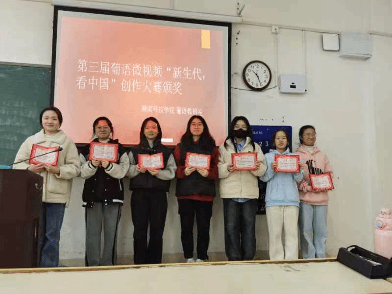 近日,公司第三届葡语微视频创作大赛颁奖仪式圆满结束。葡语教研室全体教师、葡语23级、葡语22级及葡语21级所有同学共同出席此次颁奖仪式。