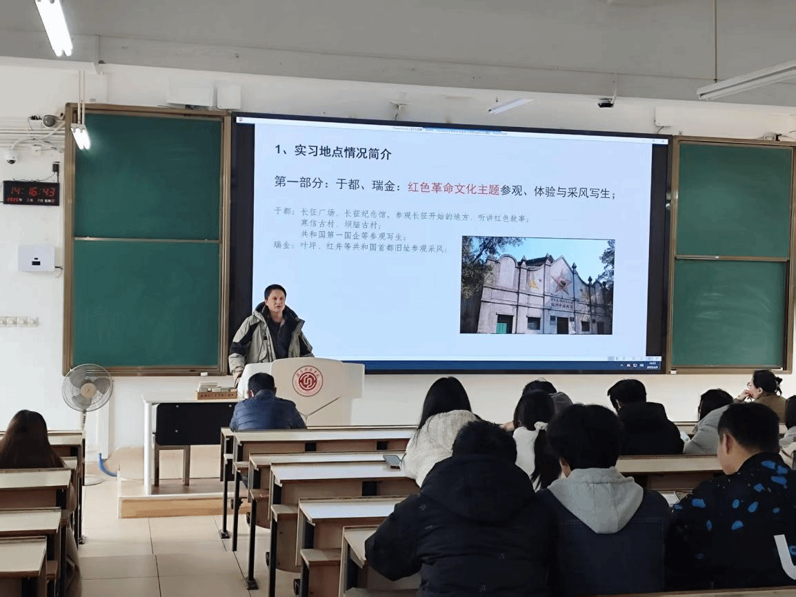 会上,何建军强调了色彩写生是人才培养方案和教学计划中的实践必修课,是学习提升文化综合素养的重要方式,在感受赣南文化提升综合素养的同时,也为学习后续专业课积累素材。何建军对实习带队老师的辛苦付出表示感谢,并预祝此次写生圆满结束。王金鉴和同学们强调了实习纪律,特别嘱咐大家离寝后一定记得断水断电。实习带队老师罗瑶老师和倪文杰老师分别就实习中的具体行程、作业要求及注意事项等做了详细说明和具体安排。