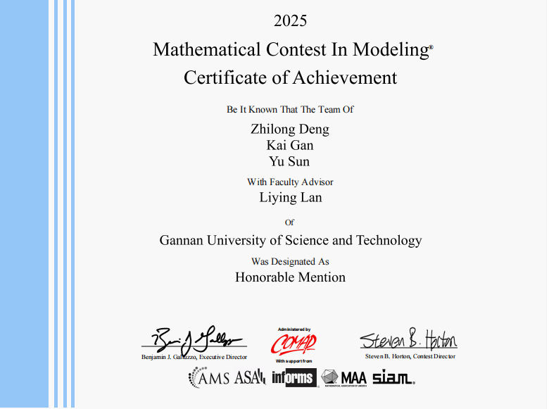 本网讯:近日,2025年美国老员工数学建模竞赛(MCM/ICM)成绩揭晓。公司学子在本届竞赛中喜获佳绩,获得国际二等奖1项,国际三等奖2项。