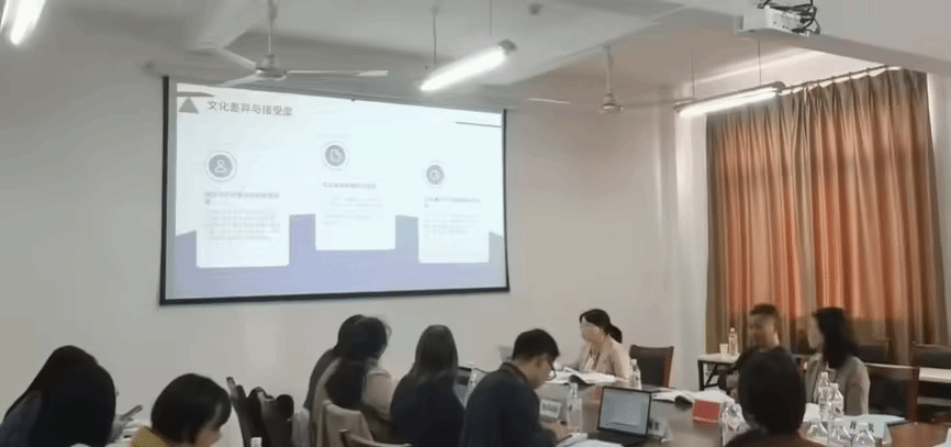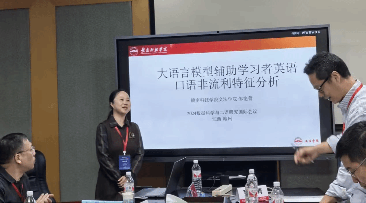 邹艳菁报告的论文题目为《大语言模型辅助学习者英语口语非流利特征分析》,论文研究了将大语言模型这一前沿科技与英语口语学习领域相结合,为分析英语口语非流利特征开辟了新路径,有助于更精确地剖析学习者在口语表达中存在的障碍,为后续的教学干预和学习策略改进提供了更有价值的依据。邱敏报告的论文题目为《实证类学术论文的语类布局研究》,论文通过自建语料库,探索物理学及语言学实证论文的语类布局特征,研究发现两门学科的实证论文在基础语类的总体布局及分阶段布局方面均存在差异,研究结果拓展语类理论的应用范围,为学术写作教学以及教材编写提供指导。谢丽琴报告的论文题目为《乡土文学译介与国际传播研究——以《边城》为例》,论文聚焦乡土文学,乡土文学作为中国文学的重要组成部分,承载着丰富的地域文化和民族情感。在全球化的背景下,乡土文学的译介与国际传播对于弘扬中国文化、促进跨文化理解具有重要意义。万文娟老师的论文“A Study on the Effect of Block Approach on the Improvement of English Majors’ C-E Interpreting Ability”进行了海报展示,论文深入探讨了基于语块的语言教学在提升英语专业员工汉译英口译技能方面的潜力。通过研究语块如何促进翻译和口译过程,旨在评估它们在提高员工在汉译英口译任务中的准确性、流利度和整体表现方面的有效性,这一观点为相关领域的研究开辟了新的视角,引得不少同行驻足观看、讨论。