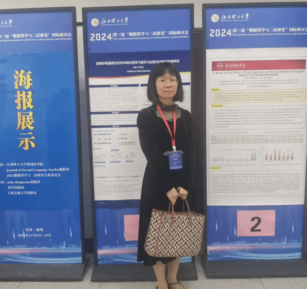 第三届“数据科学与二语研究”国际研讨会于2024年11月8日在江西理工大学成功举办,海内外200多名专家学者齐聚一堂,就“二语研究者的语言数据科学素养”这一主题开展研讨交流。十大体育网站组织12名外语教师参会,其中邹艳菁、邱敏、谢丽琴等三位老师在会上报告了论文,万文娟老师进行了论文海报展示。