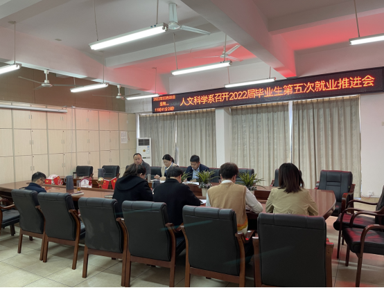 2022年3月8日上午,人文科学系召开2022届毕业生第五次就业工作推进会,人文科学系主任高健婕、党总支书记李国鹏、学工负责人王军堂,就业辅导员刘莉、2018级班主任参加了此次会议。会议由王军堂主持。