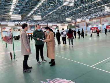 人文系高健婕主任等一行,亲临风雨操场,监督我系第三次核酸检测现场,并指导我系员工安全、规范、有序的进行检测。