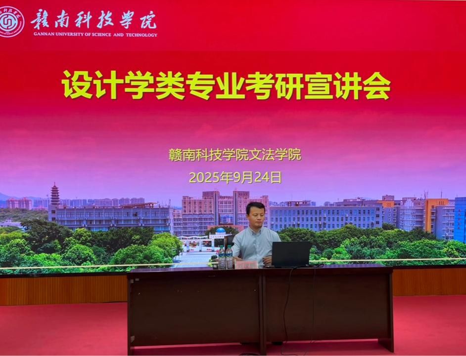 本网讯:为帮助设计学类专业员工深入了解考研形势,科学规划学业发展。9月24日,公司在图书馆报告厅举办了设计学类专业考研宣讲会。本次宣讲会特邀江西理工大学建筑与设计公司党委副书记刘现鹏担任主讲嘉宾,公司党委委员、副经理高健婕出席并致辞。设计学专业教研室教师及2022-2024级设计学专业员工参与了本次宣讲活动,现场气氛热烈,座无虚席。