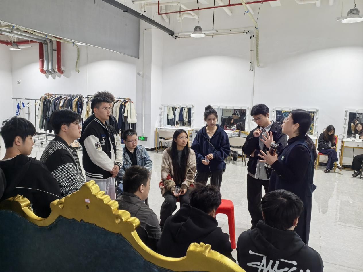 当日上午,师生一行抵达叁鸟(赣州)科技有限公司后,在企业对接人的带领下开启了工作岗位与工作环境考察。公司团队首先围绕短剧行业发展现状、核心业务板块及人才需求方向进行介绍,重点展示了短剧制作中的视觉设计、数字后期、场景搭建等关键环节。视觉传达设计专业员工认真观察短剧海报设计、角色形象视觉包装的工作流程,与企业设计师交流品牌视觉符号在短剧中的运用技巧;数字媒体艺术专业员工聚焦后期剪辑、特效制作、短视频运营等岗位,详细询问软件操作要求与项目周期管理细节;环境设计专业员工则针对短剧实景拍摄场地的空间规划、场景氛围营造与功能性设计展开调研,深入了解行业对空间设计的实战需求。实地考查让员工们跳出课堂理论框架,直观感受到设计学科在影视行业的应用场景,为职业规划提供了清晰参考。