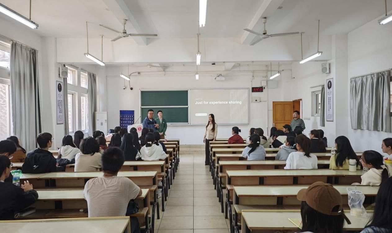 讲座中,优秀员工凌青和冯涛通过自身角度分享求职经历,并通过生动的行业案例打破了员工对“外语专业就业窄”的认知误区,展现了外语学科多元发展的可能,更将职场视角引入校园,让员工提前触摸行业需求与发展脉搏,有助于同学们明晰就业方向及职业规划,提升就业竞争力。在随后的互动环节中,同学们踊跃提问,围绕英语专业就业的行业前景及未来发展方向与优秀员工进行了深入交流,现场气氛热烈。